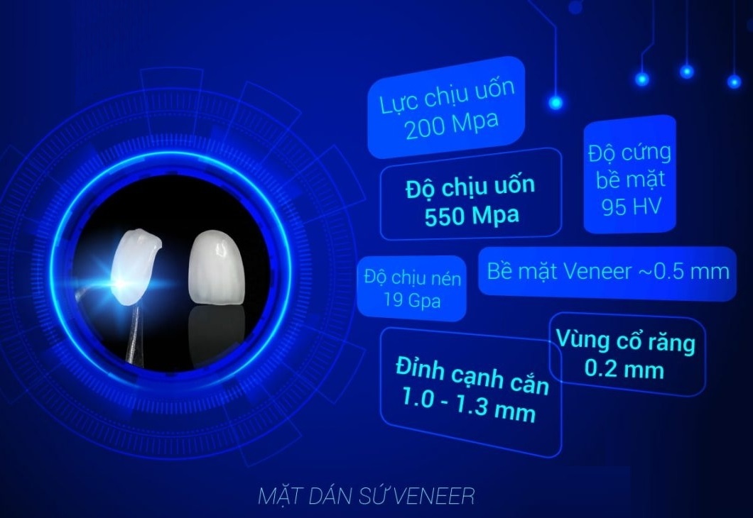 Thông thường độ dày của mặt dán sứ Veneer sẽ rơi vào khoảng 0.2 – 0.5mm tùy theo tình trạng răng khác nhau của khách hàng. Mỏng hơn gấp 4 lần so với khi bọc răng sứ. Do đó mặt dán này sẽ đóng vai trò như một lớp áo giáp, bảo vệ men răng của bạn đồng thời mang lại hình dáng chuẩn cho răng. Mặt dán Veneer còn có đặc tính kháng khuẩn siêu cao nhờ bề mặt Nano.