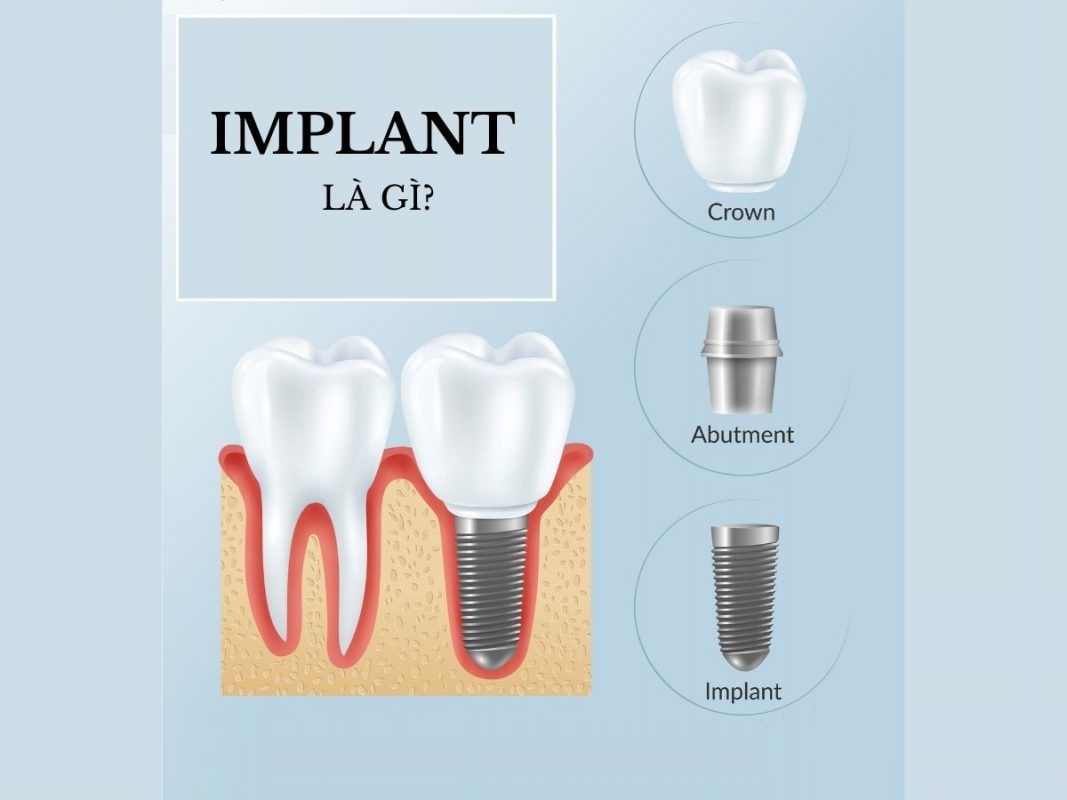 Răng imlant có cấu tạo gồm 3 phần chính: