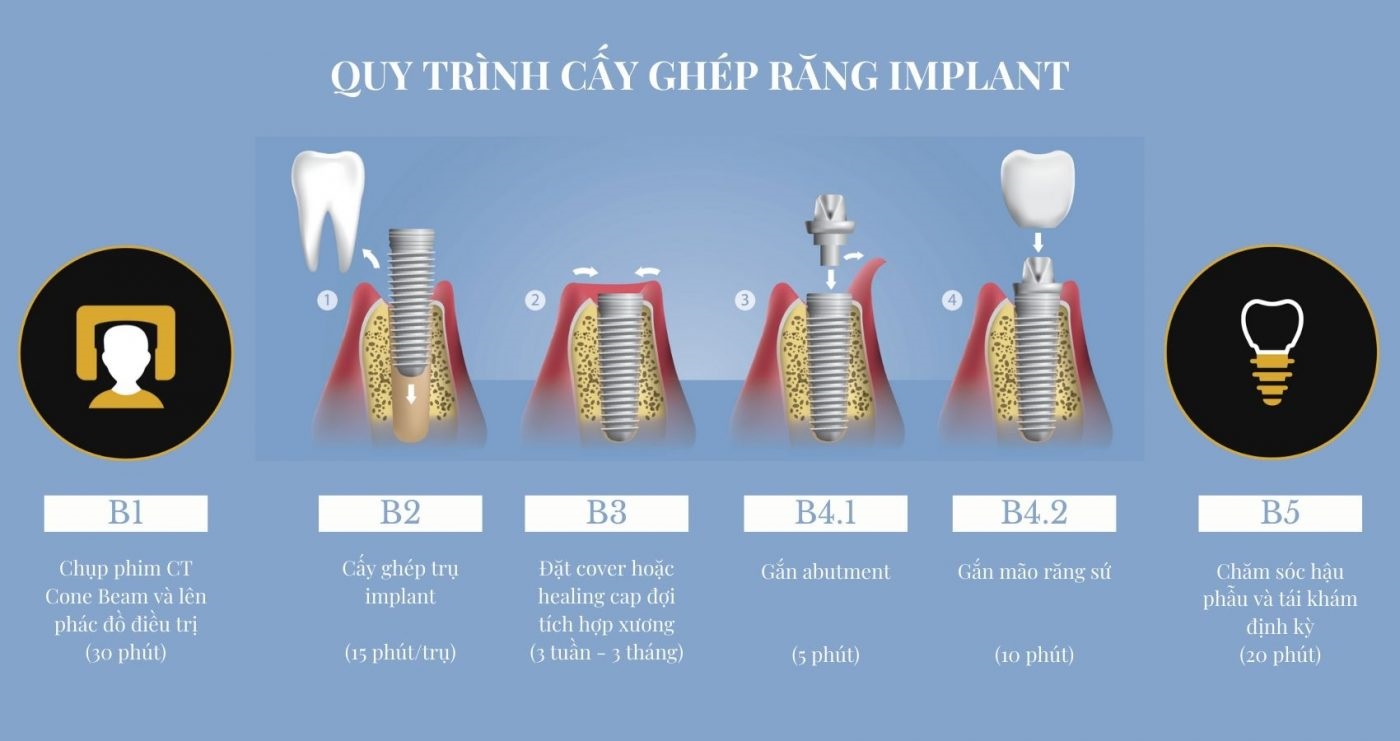 Khoang miệng sẽ được vệ sinh kĩ lưỡng nhằm đảm bảo môi trường vô khuẩn cho quá trình cấy ghép. Sau đó bác sĩ sẽ tiến hành gây tê, vô cảm, đảm bảo êm ái trong suốt quá trình thực hiện.